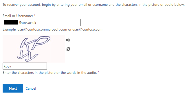- You will then receive a verification code sent to your personal email (this will be the email address you supplied when applying to the university). If you do not receive an email, please check your junk/spam folder.