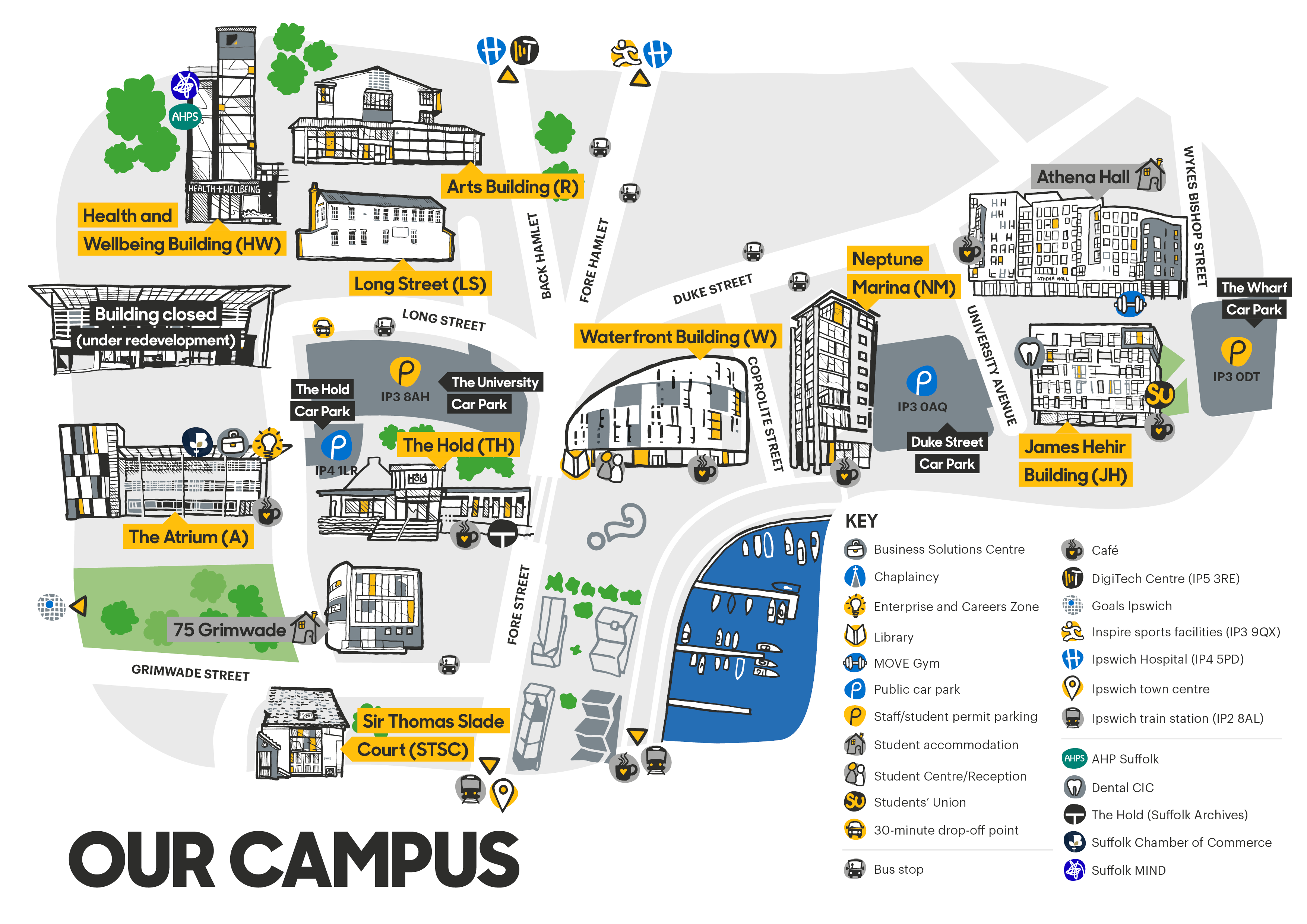 Take a stroll through Ipswich with our exclusive map, designed by our talented and award-winning Graphic Design graduate, Sammi Wong. Discover key landmarks and hidden gems as you explore the town at its finest!