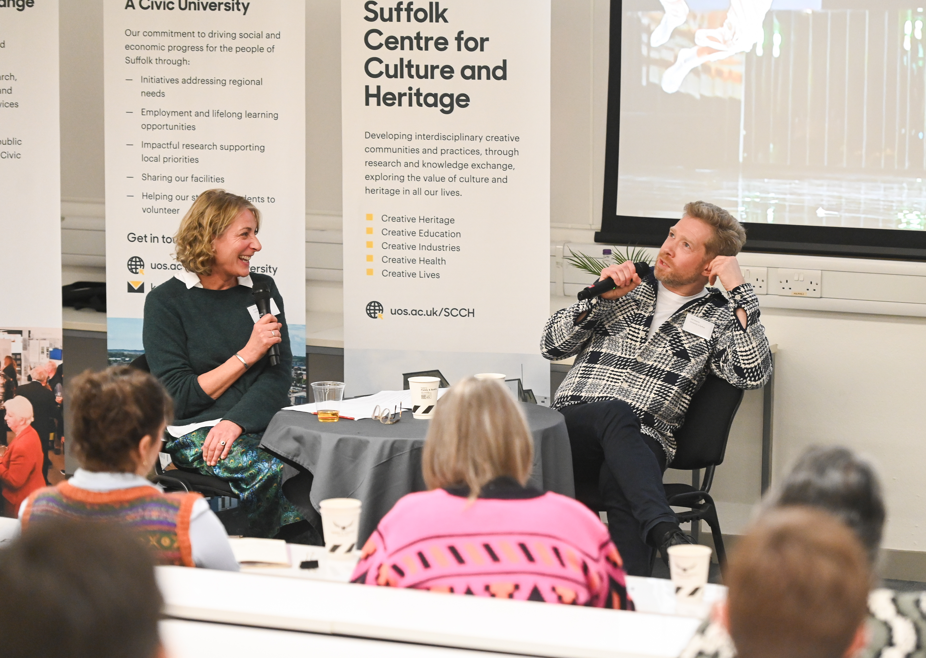 On Friday 14 November 2025, we marked the launch of the Centre by showcasing creative talent from across Suffolk including a discussion about our creative landscape with Broadcaster and new Chancellor of the University of Suffolk, Zeb Soanes.